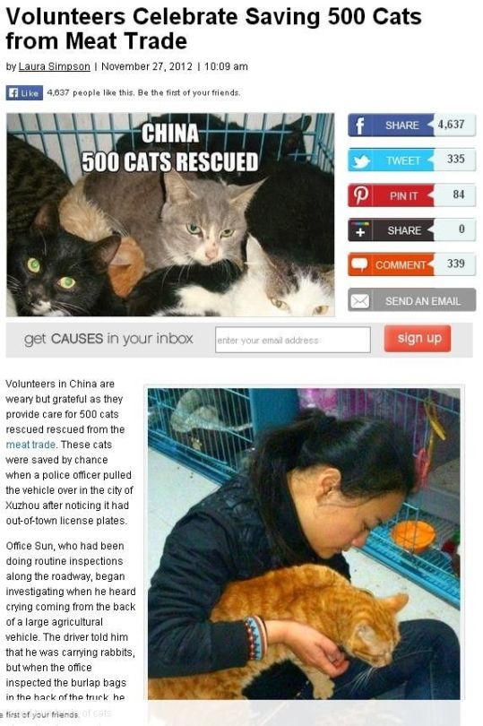 Cats – Saved from fur trade killers in China story Tue 17 Feb 2015 572 × 860 Rescue Picture Meme Gallery ShareTweetShare on Tumblr Share on Reddit (Opens in new window) Reddit Pocket Share on WhatsApp (Opens in new window) WhatsApp Share on Telegram (Opens in new window) Telegram Email a link to a friend (Opens in new window) Email Print (Opens in new window) Print Like Loading...