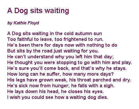 Dogs – Abandoned poem Sat 8 Aug 2015 480 × 376 Rescue Picture Meme Gallery ShareTweetShare on Tumblr Share on Reddit (Opens in new window) Reddit Share on WhatsApp (Opens in new window) WhatsApp Share on Telegram (Opens in new window) Telegram Email a link to a friend (Opens in new window) Email Print (Opens in new window) Print Like Loading...