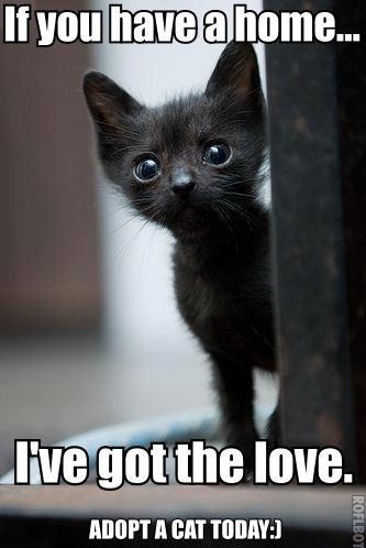 Homeless pets – Cat if you have a home, I’ve got the love Tue 17 Feb 2015 333 × 498 Rescue Picture Meme Gallery ShareTweetShare on Tumblr Share on Reddit (Opens in new window) Reddit Share on WhatsApp (Opens in new window) WhatsApp Share on Telegram (Opens in new window) Telegram Email a link to a friend (Opens in new window) Email Print (Opens in new window) Print Like Loading...